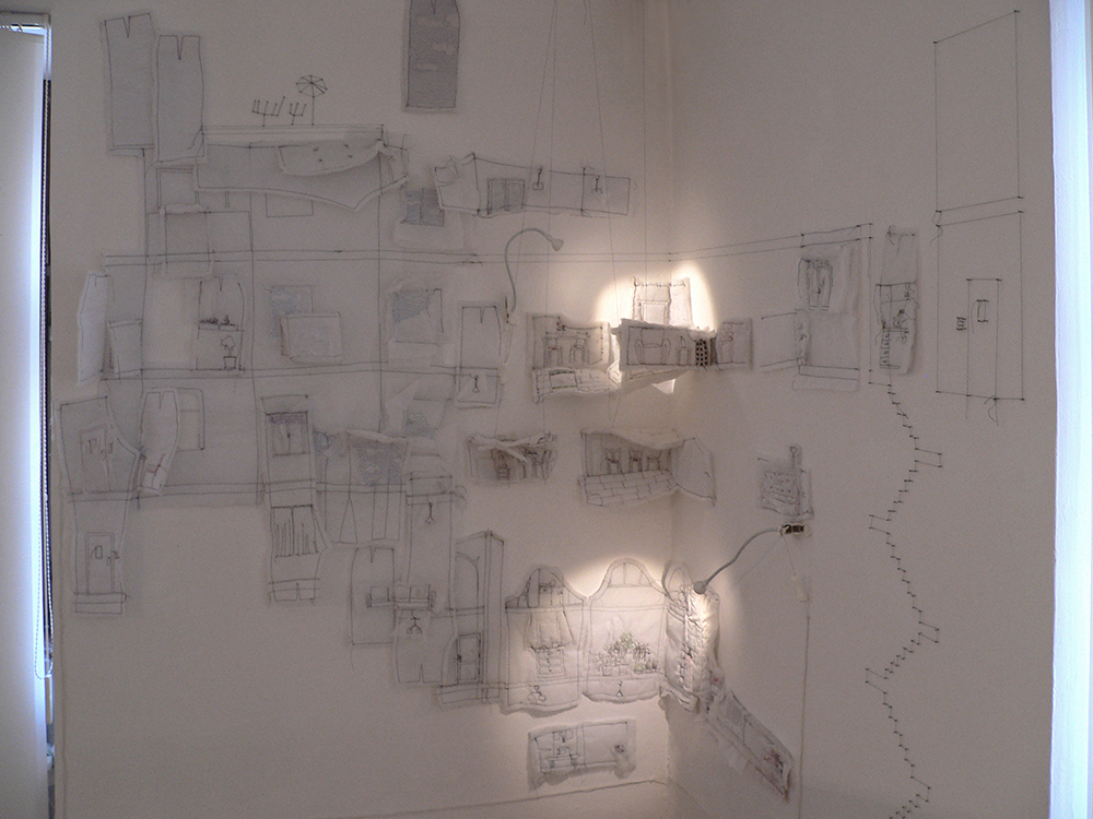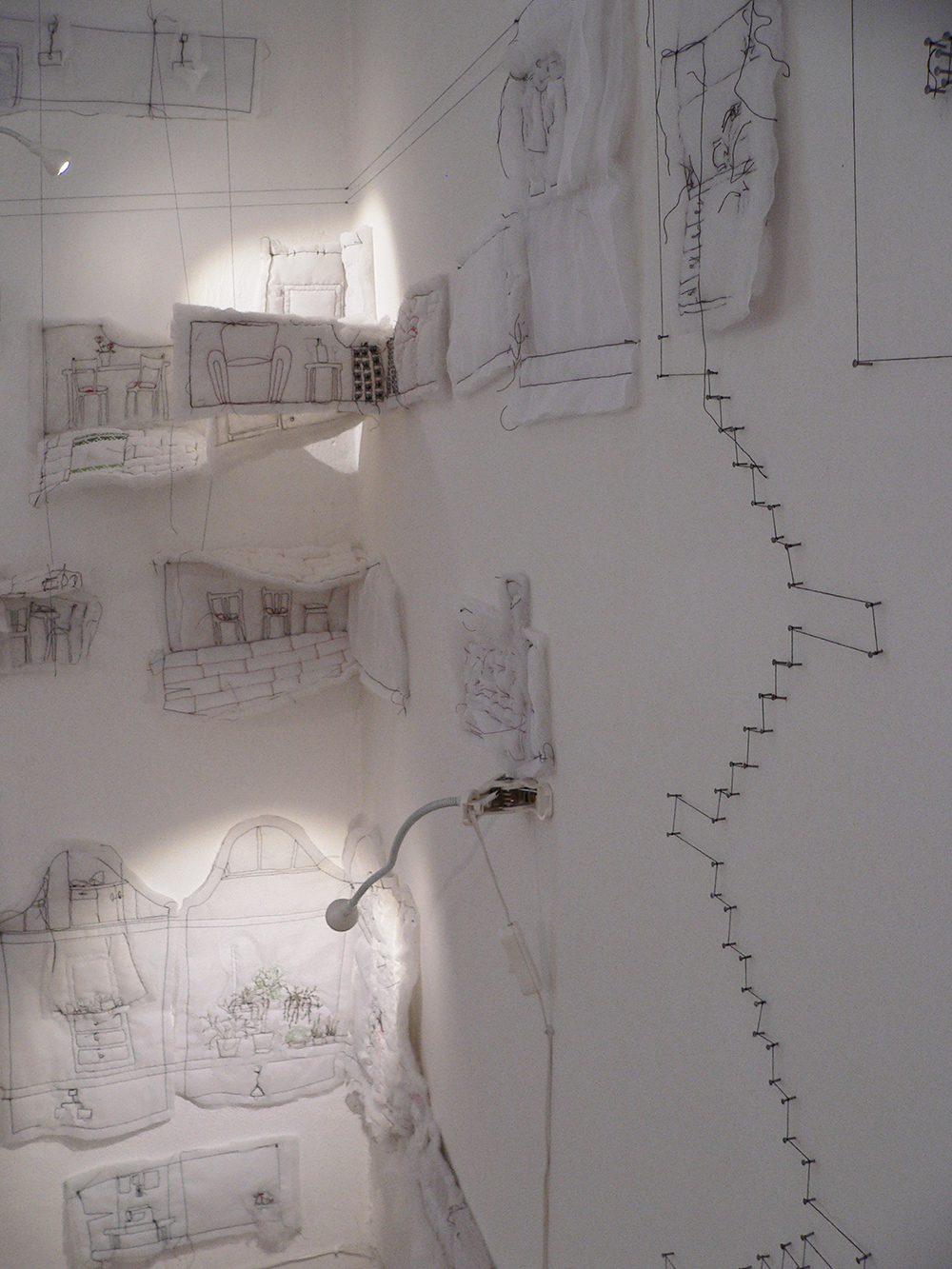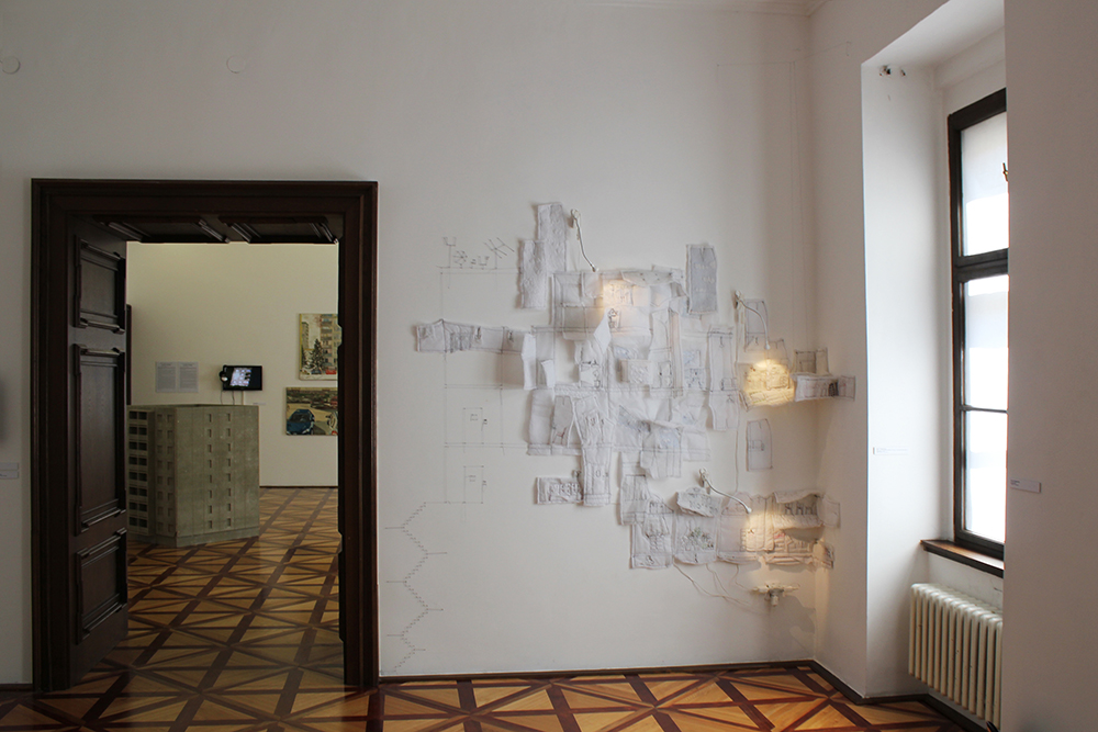 Project Block of Flats develops ideas from the previous project PrieSTORY. It combines and mixes textile objects into one bigger piece. Installation refers to repeating, multiplication, depersonalisation, and loss of identity (what is closely related to panel houses), but on the other side, it offers the opposite: in the same flats, there unfold unique, specific intimate stories.