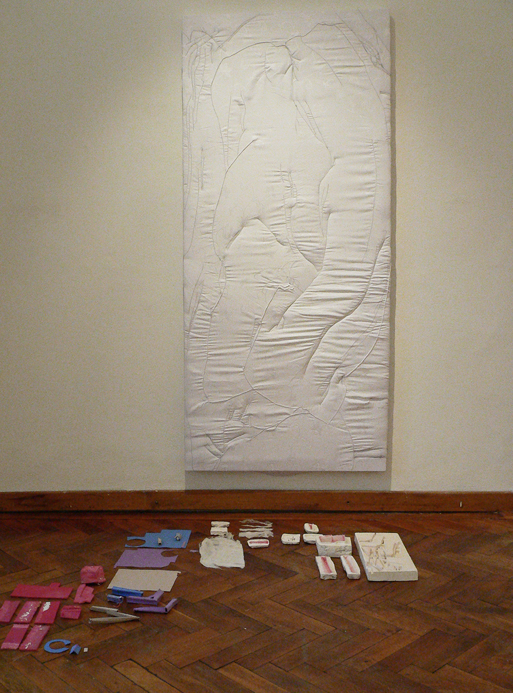 It carries on the ideas from the work “My room”, 2006, an installation consisting of textile reliefs describing fragments of various objects from my room.