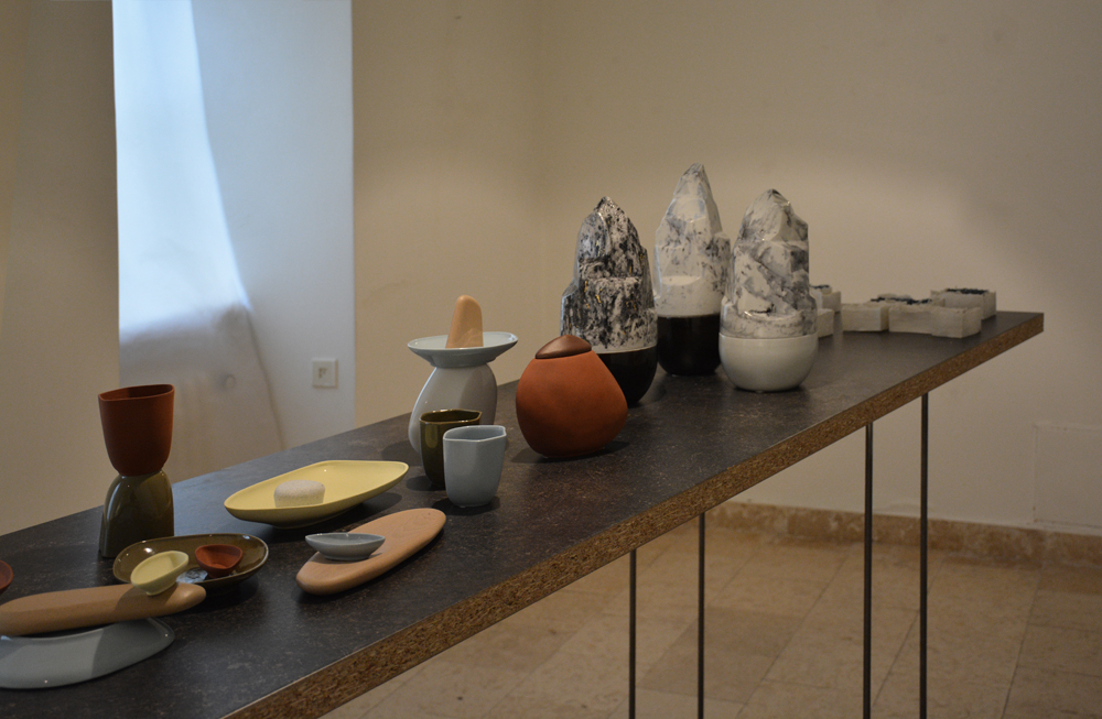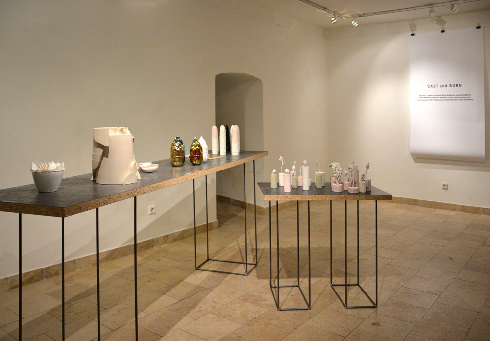 Technika liatia porcelánovej alebo keramickej hmoty do sadrových foriem prepája práce všetkých vystavujúcich. V klasickej forme sa ponúka v podobe dizajnov netradičného stolovania u Márie Kobelovej, ktorá hľadá nové možné, prípadne až samoúčelné podoby.