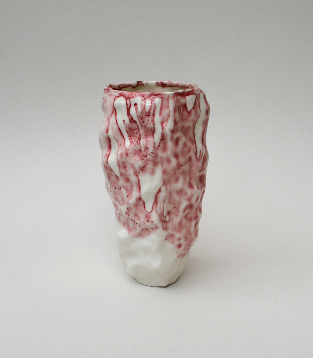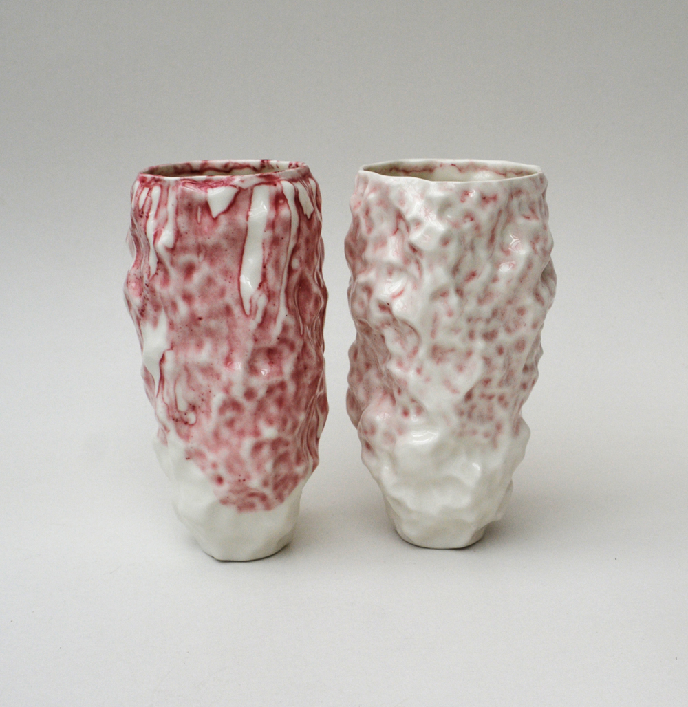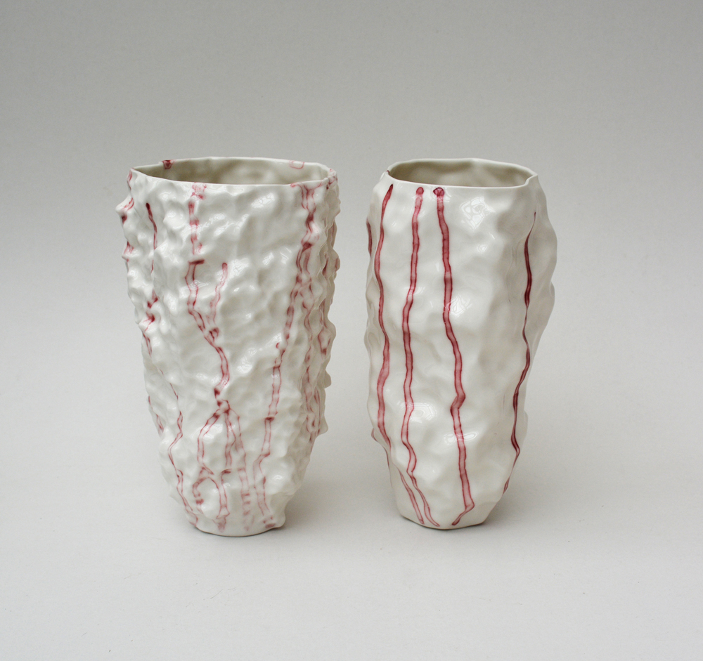 Newest collection of vases continues and develops the ideas of the previous project Bio-vases, which we started in 2013. We are one sculptress and one ceramic designer working together. And our project combines these two different approaches – designer way of working with porcelain and independent sculptural thinking about plastic decor and having in mind every piece as original solitaire piece. Vases IN present the look inside the Lilac vase and Bio-vase 6, with which we have been fascinated since the first collection. We created a set of four vases. They have different appearances according to details and possibilities of plastic decor of chosen two vases. We also continue with decorating of vases with colour under glazing and in the glaze, but also decorations in the third firing – gold, platina and luster colours.